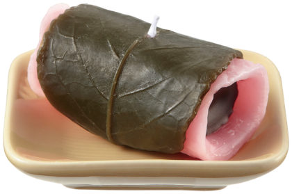 好物シリーズ ろうそく さくら餅キャンドル横9.5㎝x縦9.5㎝x高4.8㎝748円(税込)