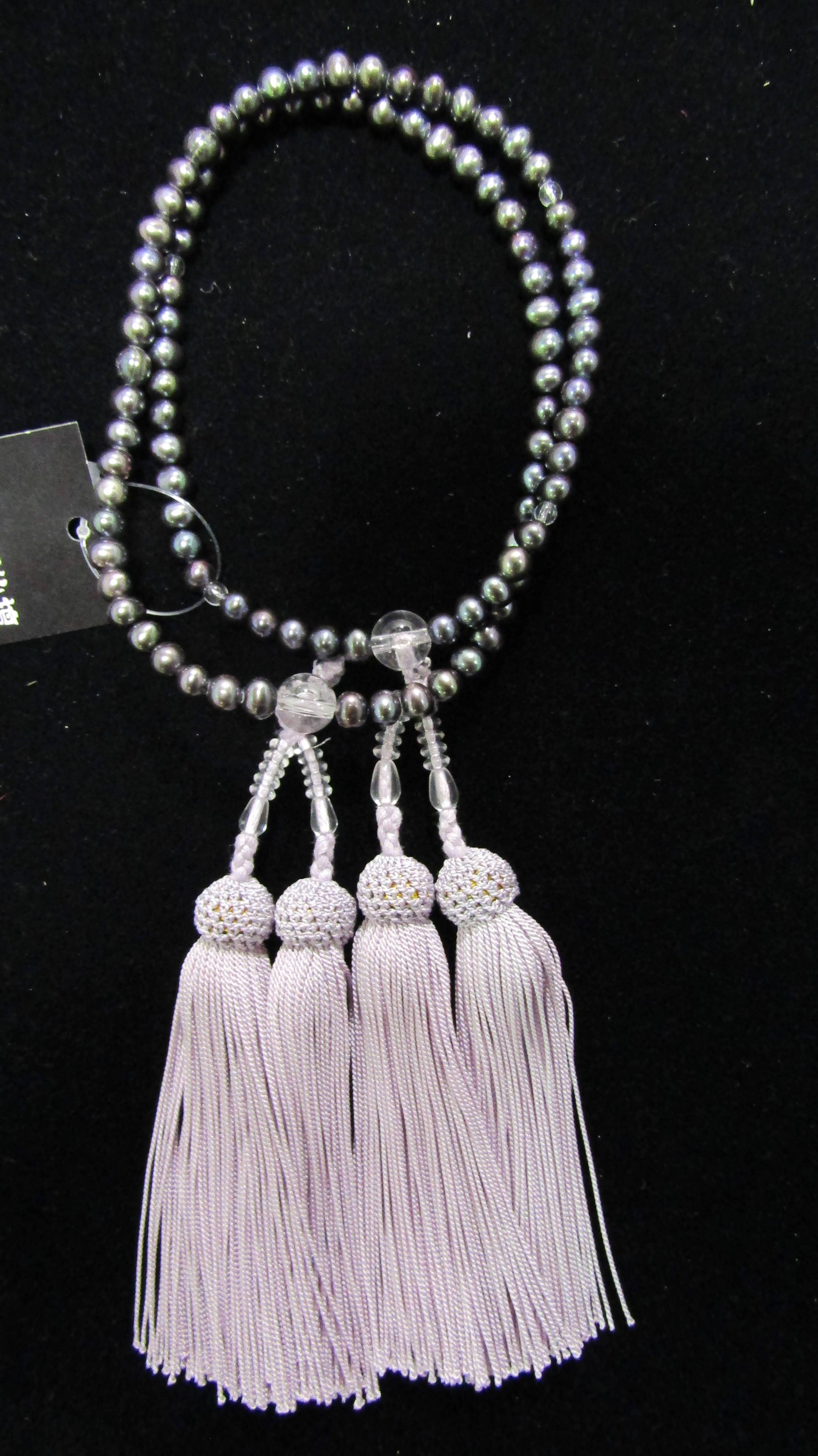 念珠 女性二重 黒淡水真珠 本水晶仕立